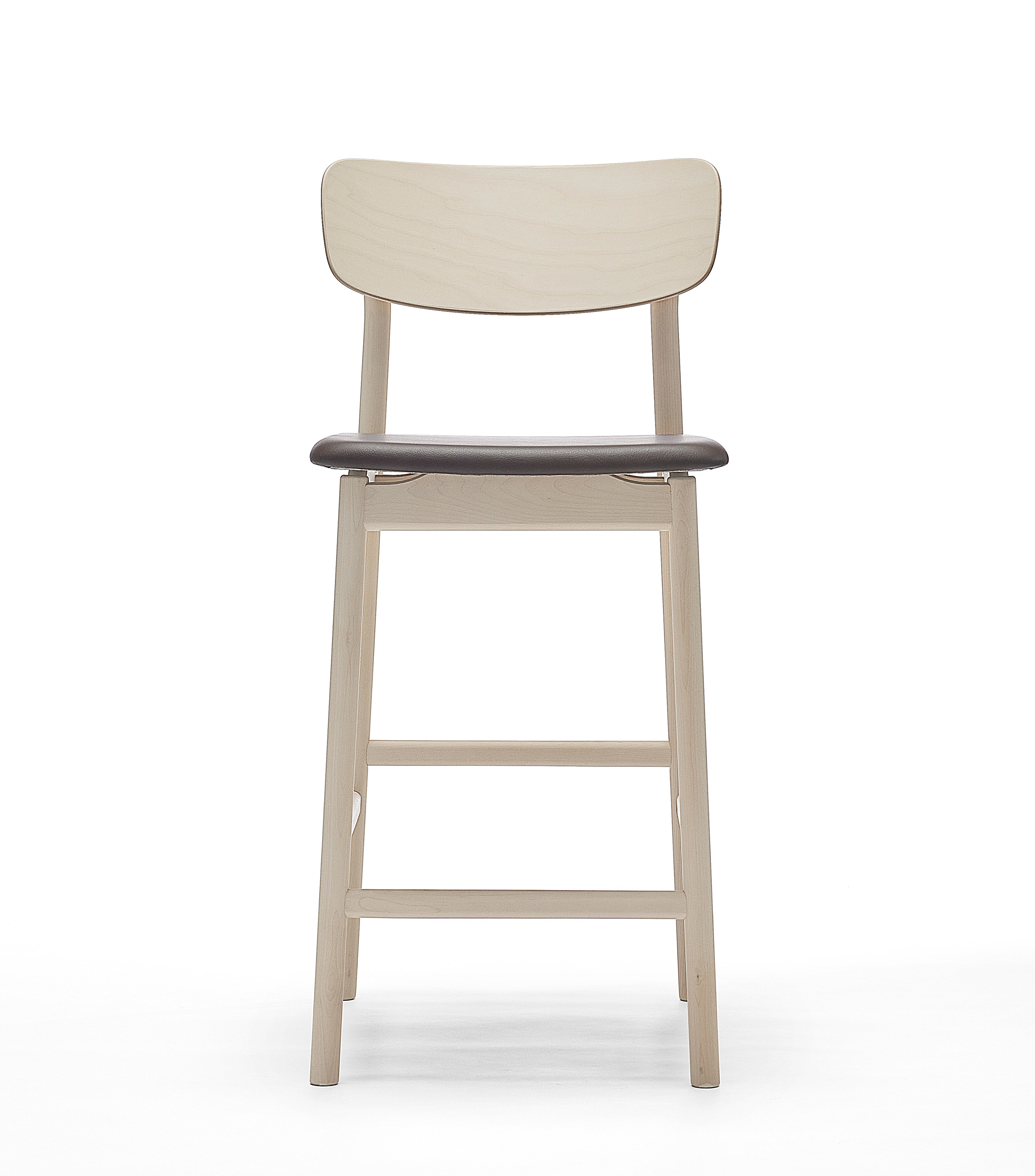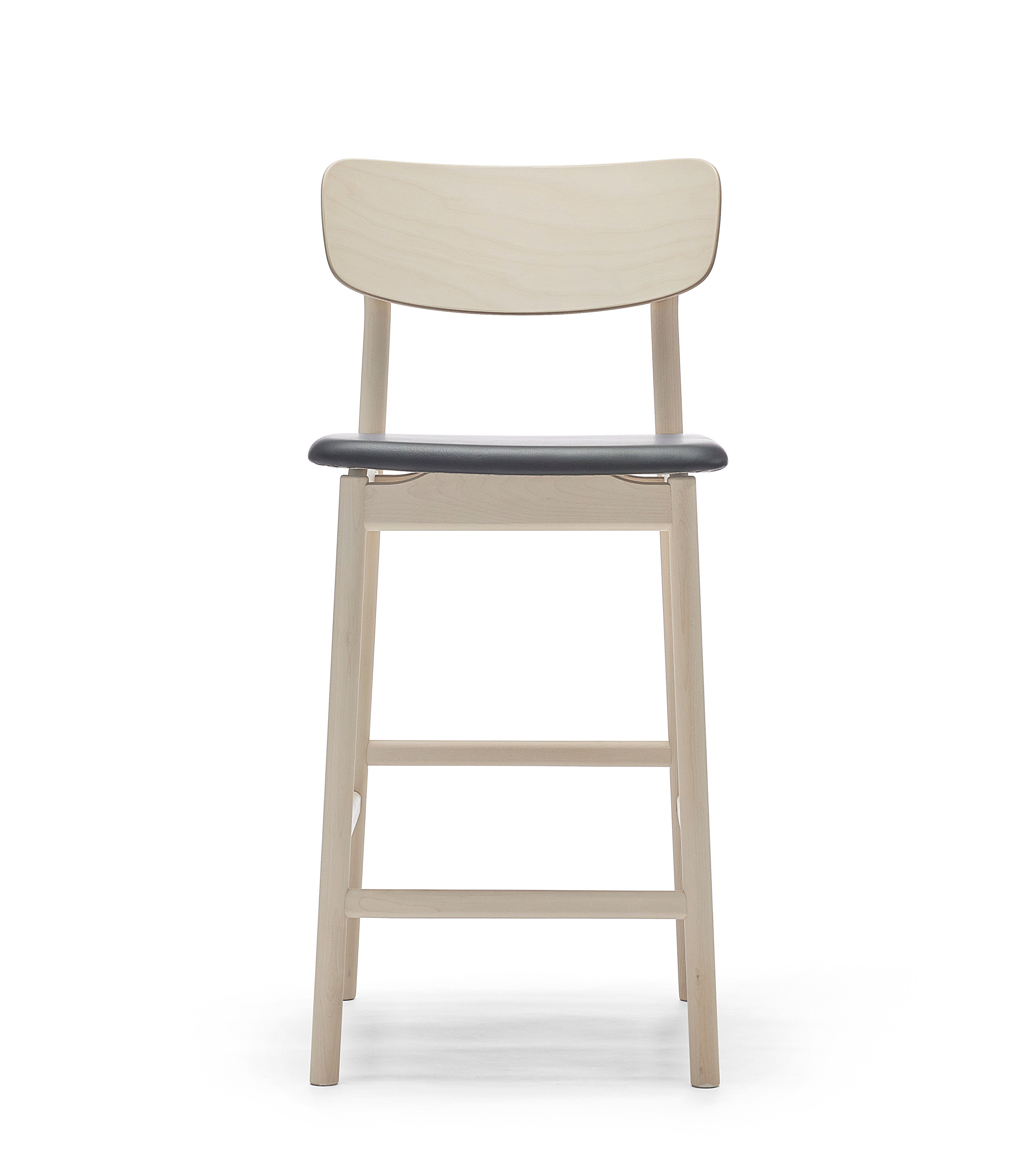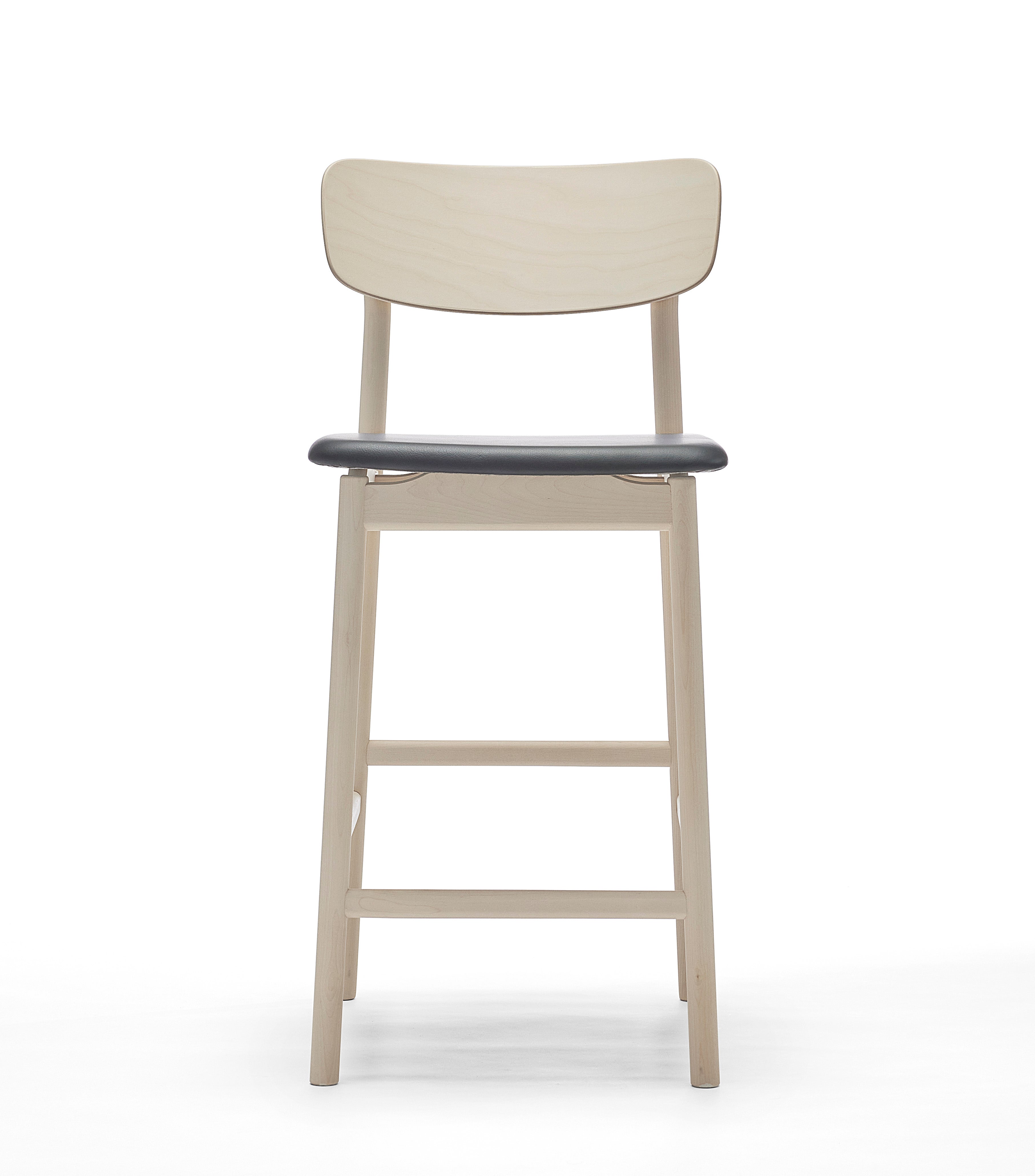 Marit Stigsdotter / Staffan Lind | 2019Prima Vista bar stool is part of the popular Prima Vista series and is designed by Marit Stigsdotter and Staffan Lind. It is a well-crafted and well-thought-out chair, which has become a natural successor to the Prima Vista chair. The rear leg of the Prima Vista bar stool with its slight bend at the backrest, together with the softly rounded back and convenient seat, it altogether creates the small details that make the chair stylish and comfortable to sit on. The back rest is made of veneered wood, while the frame is made of solid birch or solid oak.